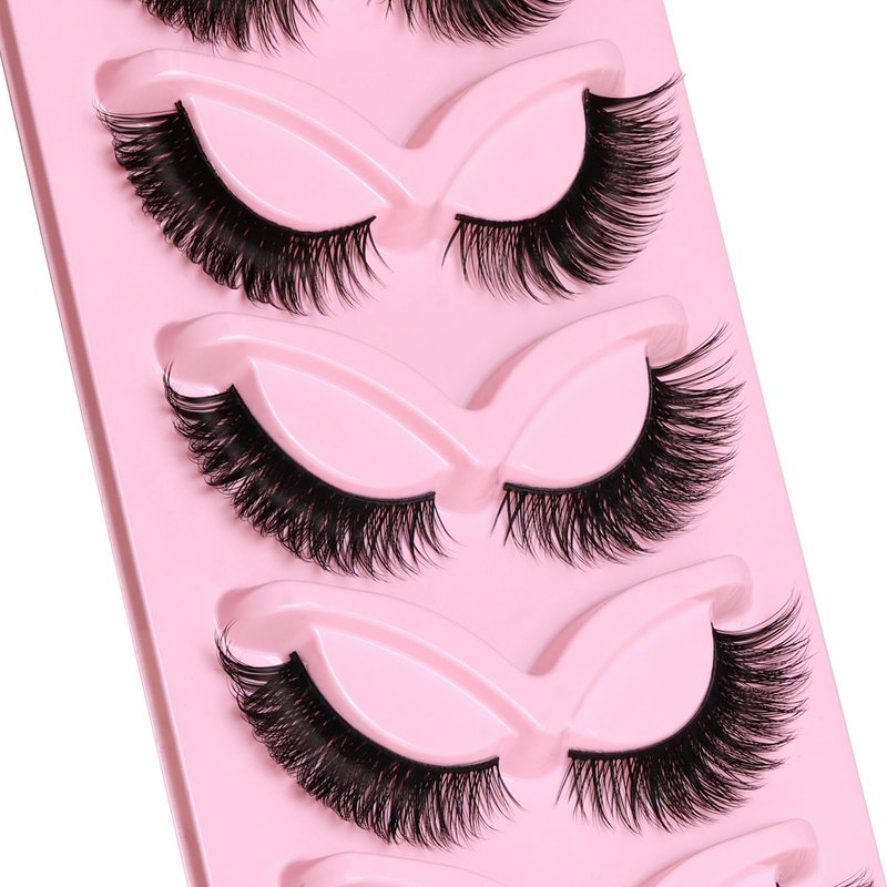 Veleasha Cat Eye Lashes Natural Look Fox False Eyelashes Gorgeous Wispy & Lightweight Faux Mink Lashes for Doll Eye Makeup 5 Pairs Pack (Charming)