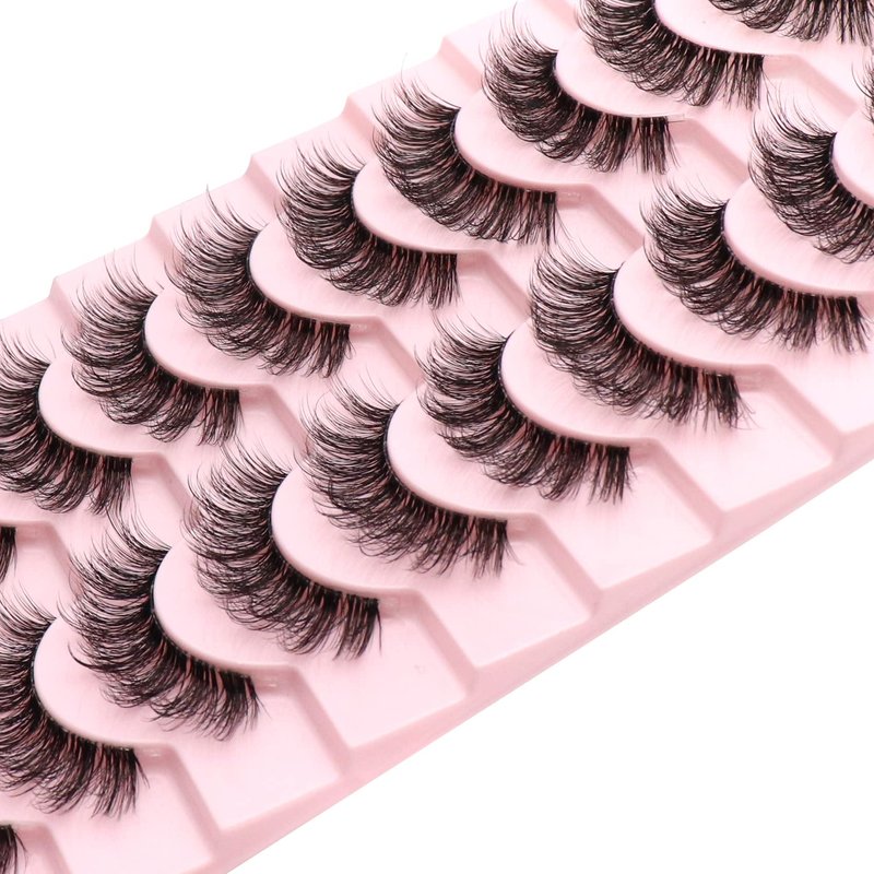 Veleasha Clear Band Lashes 10 Pairs Pack D Curl Russian Strip Lashes,Natural Look Transparent Soft Band Faux Mink Eyelashes for Eye Makeup (D03-T)