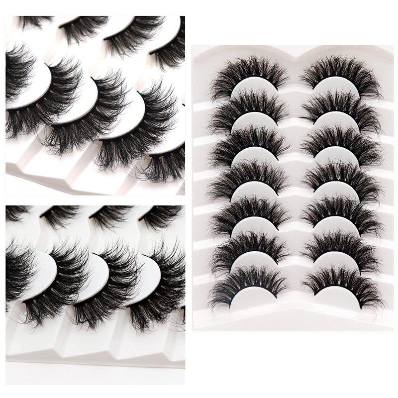 Veleasha False Eyelashes Wispy Faux Mink Lashes Fluffy Handmade Fake Eyelashes Natural Look 7 Pairs Pack Luxury Cat Eye Lashes (804)