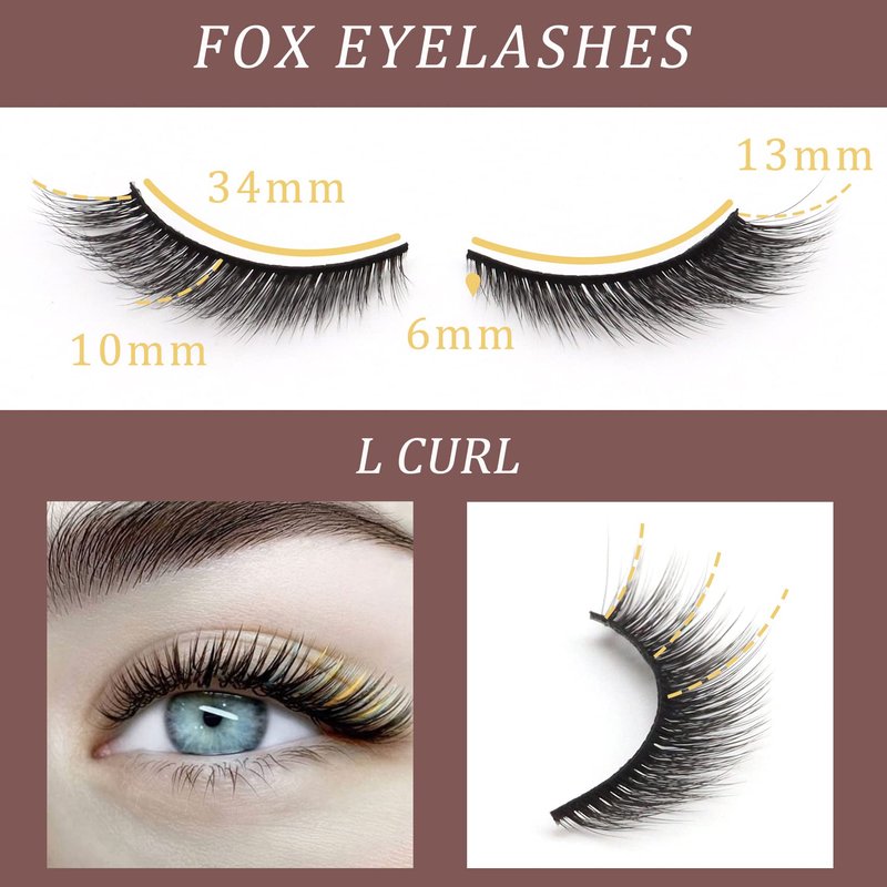 - Fox Eye Lashes: Fox eyes lashes with multiple effects of different lengths and diameters, upturned at the end of the eyes, elongating the eyes, enlarging the eyes, showing cute and sexy.