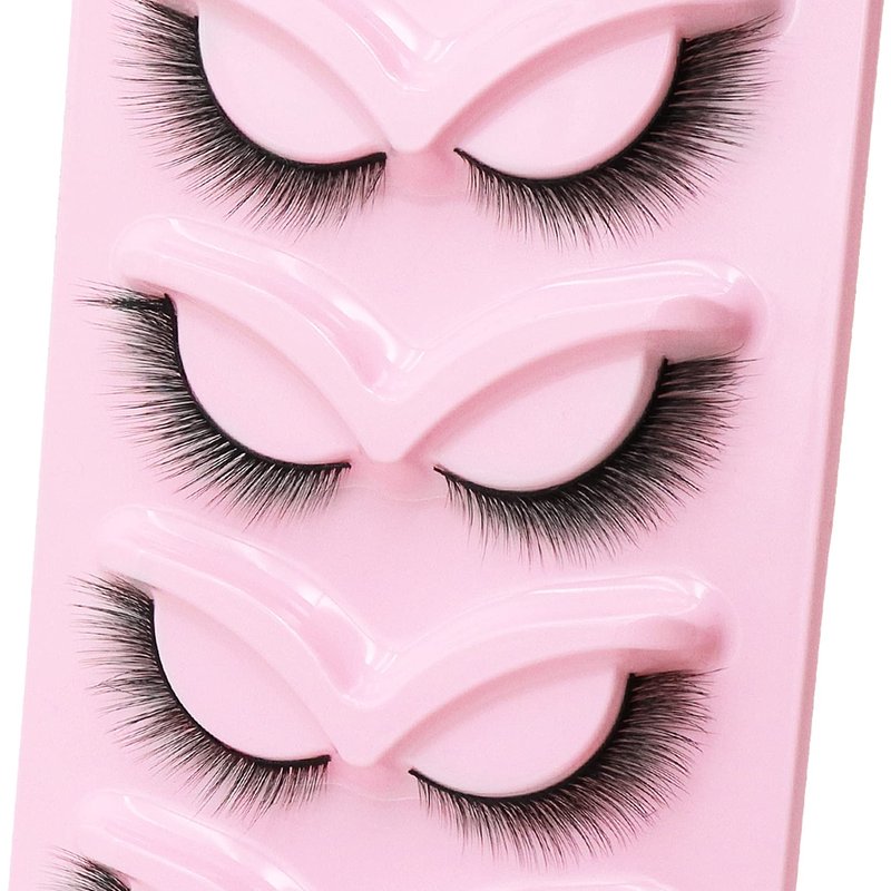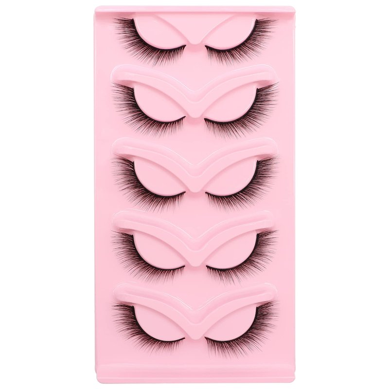 Veleasha Fox Eye Lashes L Curl Fluffy False Eyelashes 5 Pairs Pack Cat Eye Lashes Wispy & Lightweight Fake Eyelashes for Doll Eye Makeup (Foxy 04)