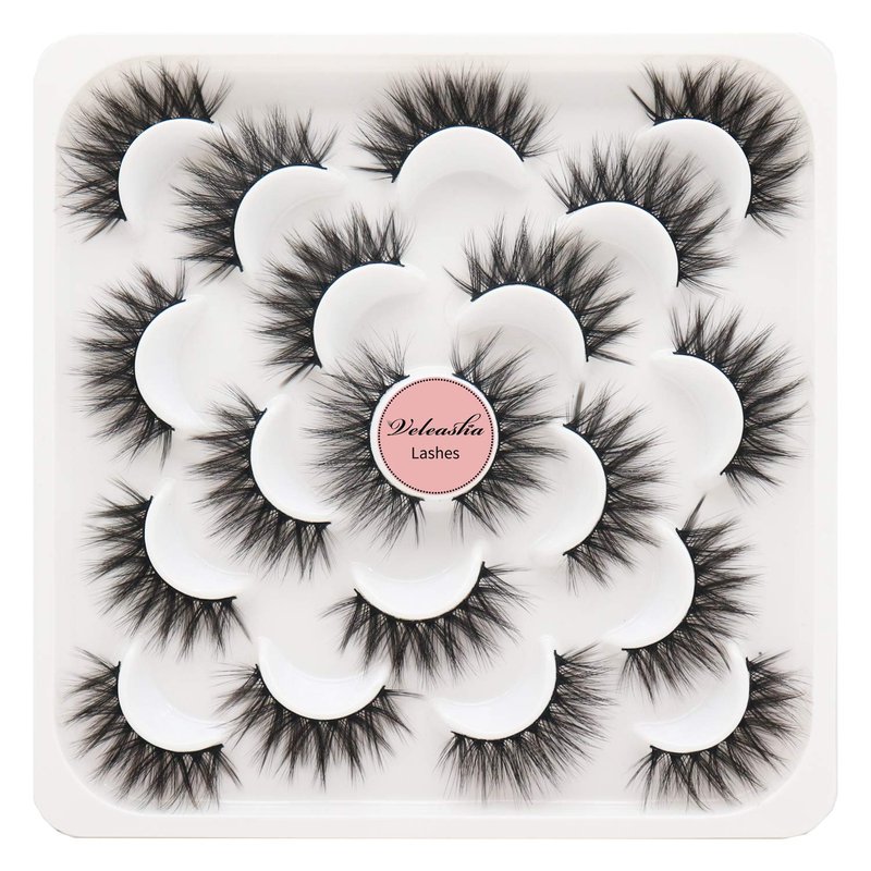 Veleasha Lashes 10 Pairs Natural Fluffy False Eyelashes Soft Wispy Lashes 3D Faux Mink Lashes Pack (V06)