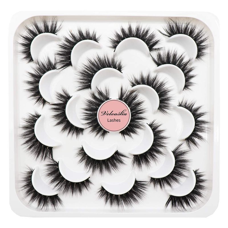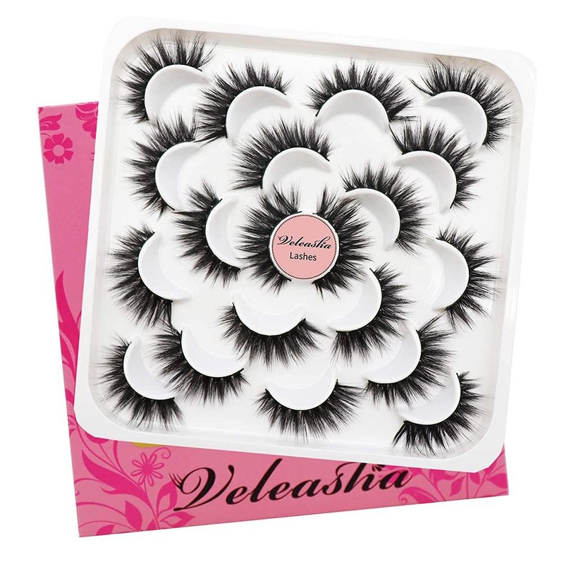 Veleasha Lashes 10 Pairs Natural Fluffy False Eyelashes Soft Wispy Lashes 3D Faux Mink Lashes Pack (V42)