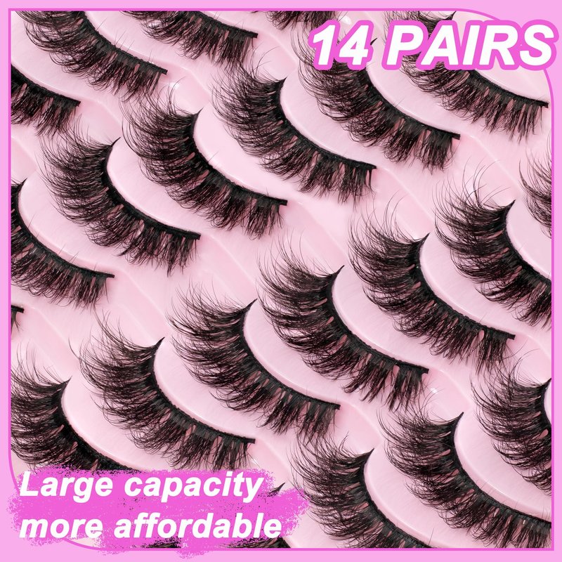 Veleasha Lashes 3D Faux Mink Lashes Fluffy False Eyelashes Natural Look 14 Pairs Lashes Pack Luxury Wispy Fake Eyelashes (815-Z)