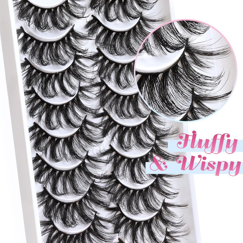 Veleasha Lashes Fluffy Wispy Faux Mink Eyelashes Criss-cross False Lashes 10 Pairs Pack Fake Eyelashes for Women (6D23)