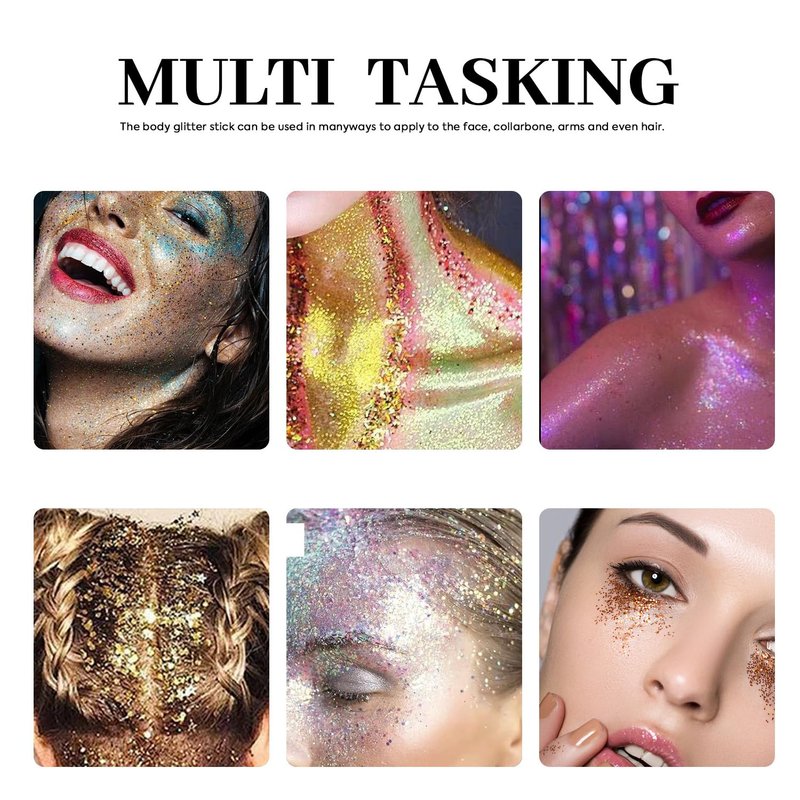 Body glitter gel offers a wide range of colors, not only can you easily create three-dimensional highlights, but also can be used on the body, face, hair, etc., to meet your multiple makeup needs, especially for parties or festivals!