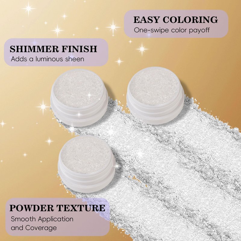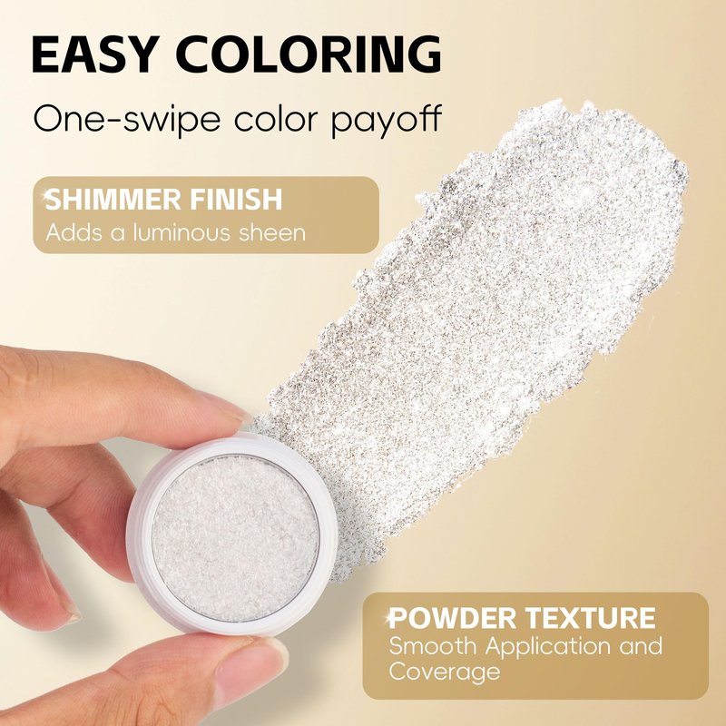 - 【Glitter Eyeshadow Palette】 White shimmer eyeshadow with great glitter and shimmering effect, it can make you more charming and bling, can immediately lighten the skin,the sparkly eye shadow picks up and blends out effortlessly for a simple yet glamorous single shade eyeshadow look
