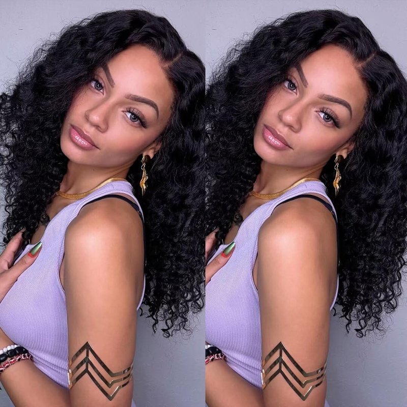 - 【Deep Curly Lace Front Wigs Human Hair Cap Size】human hair wig average cap size (21.5-22.5 inch) with adjustable straps and 4 combs, ear to ear 13x4 transparent swiss lace, easy to adjust&long-lasting, can tight fit most people's heads perfectly.