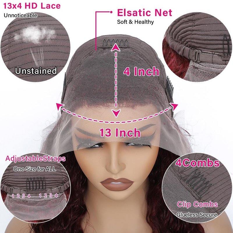 - Deep Wave Lace Front Wigs Human Hair Size: 99j Burgundy Lace Front Wigs Human Hair Deep Wave, Adjustable One Size For All (21.5"-23.5") With Hooks Fit For Small,Medium And Big Head Friendly,180 Density Water Wave Human Hair Wig Hair Replacement Wigs