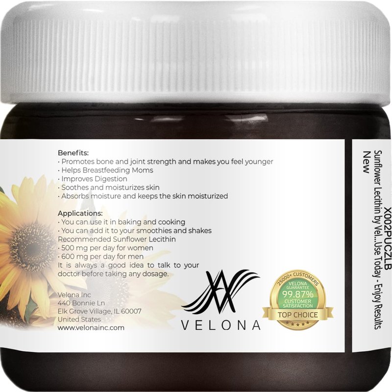 velona Pure Liquid Sunflower Lecithin 2 oz | Food Grade | Unbleached | Emulsifier, Stabilizer, Softener, Smoother, Wetting Agent | Use Today - Enjoy Results