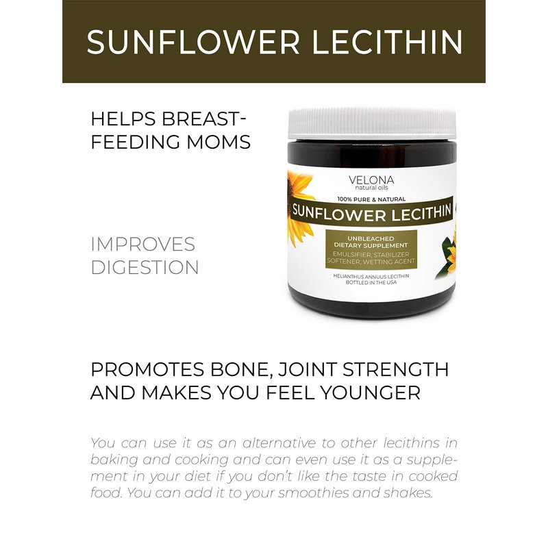 - BOOST DIGESTION: Sunflower lecithin has emulsifying properties which might help in making the digestive process a bit easier as well as protecting the delicate lining of the digestive system.