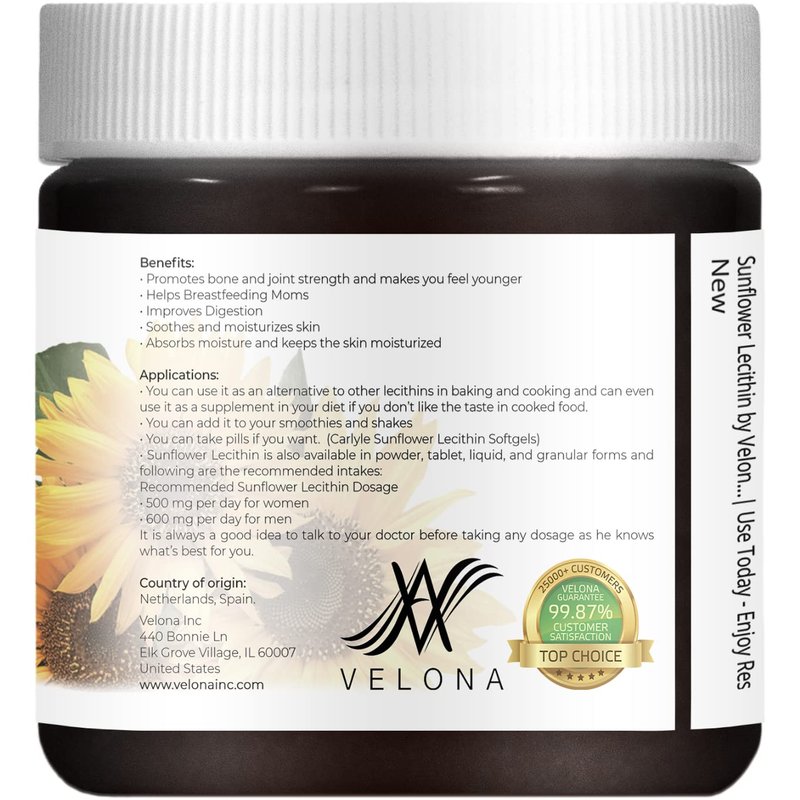 velona Pure Liquid Sunflower Lecithin 4 oz | Food Grade | Unbleached | Emulsifier, Stabilizer, Softener, Smoother, Wetting Agent | Use Today - Enjoy Results