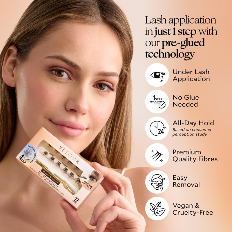 - SELF ADHESIVE LASH CLUSTERS - Lash application in just 1 step with Velour pre-glued technology! Perfect for beginners, these self-adhesive lash clusters are easy to apply and mess-free.