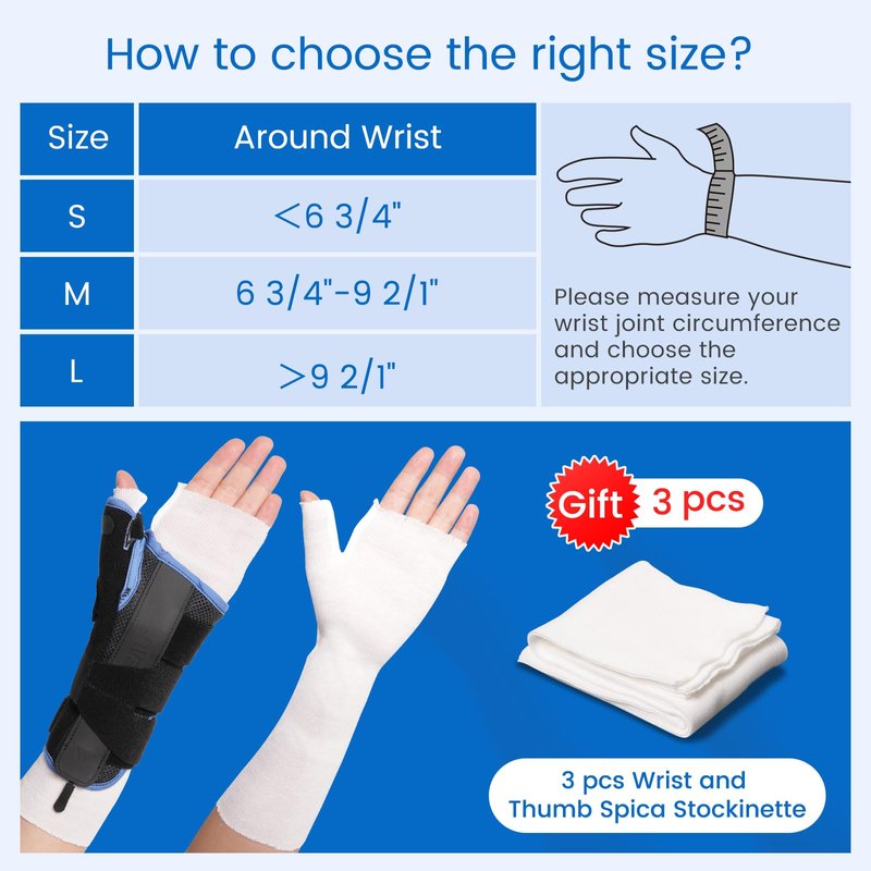 - 【Easy-to-Wear Design】This Thumb Splint and Wrist Brace utilizes an integrated strap design, making it simpler to put on compared to traditional products. With faster and easier tightness adjustment, it provides a more even pressure on the wrist. Alleviate wrist pain, improve blood circulation, and expedite the recovery process with this brace. It is washable, reusable, and available in different sizes for both men and women.