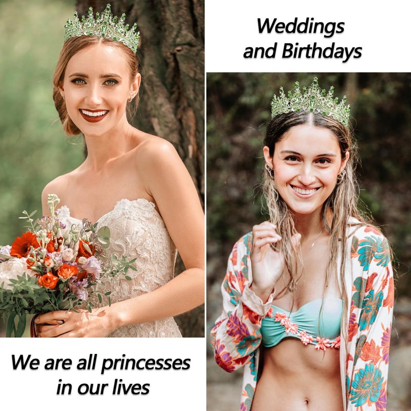 - ❤️Material: durable cemented carbide and rhinestones. The alloy has a diamond appearance and a hard texture, which is both practical and beautiful. The weight of the product is less than 200 grams, and there is no sense of weight on the head after wearing the crown.