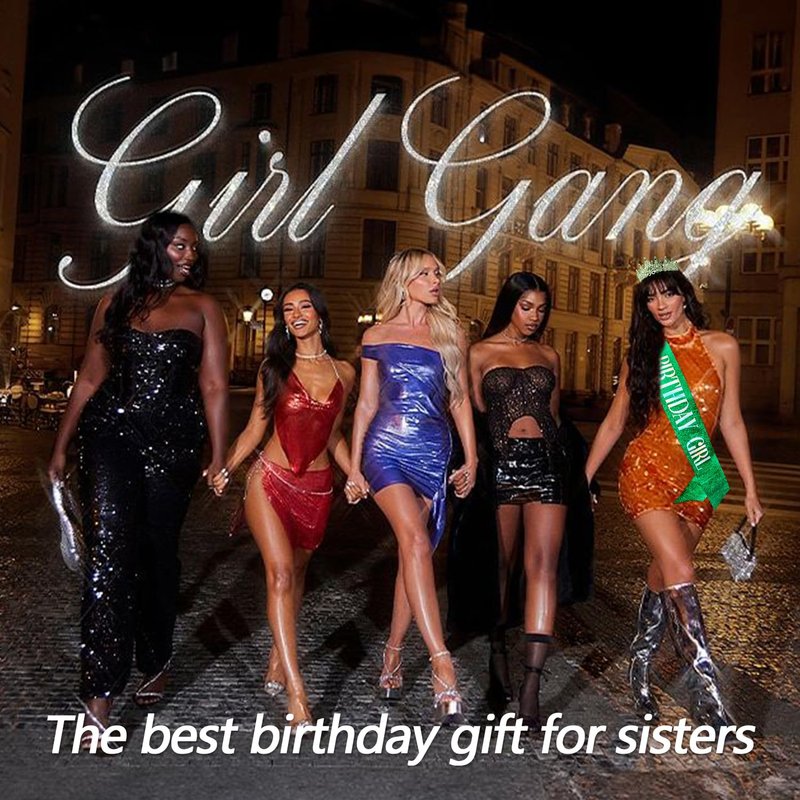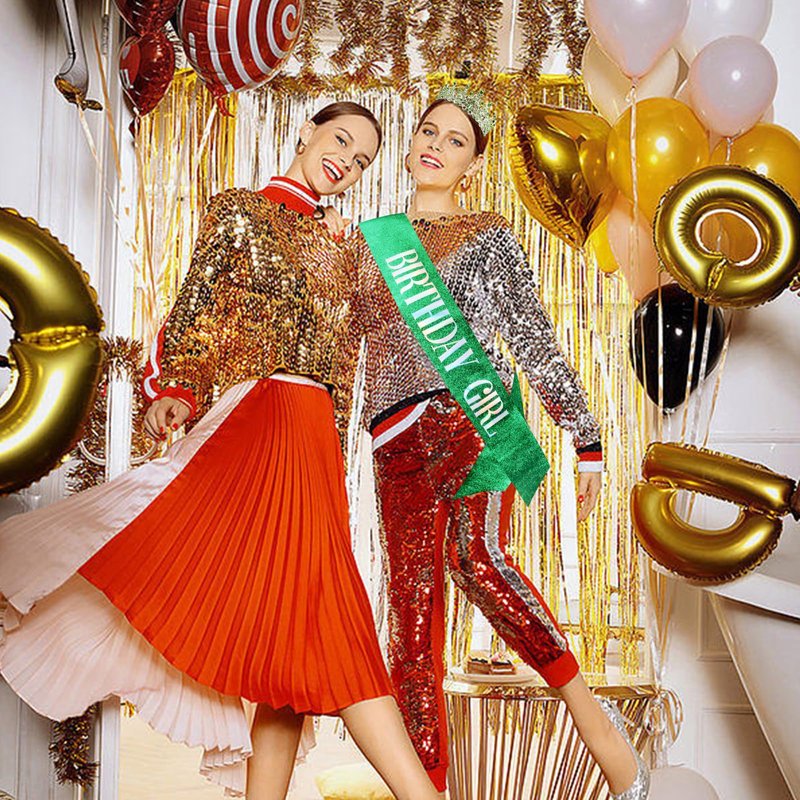 VELSCRUN Birthday Tiara Crowns for Women Girls Green Crystal Birthday Girl Headband Sash Elegant Princess Crown Happy Birthday Party Decorations Women Sisters Birthday Gift Hair Accessories