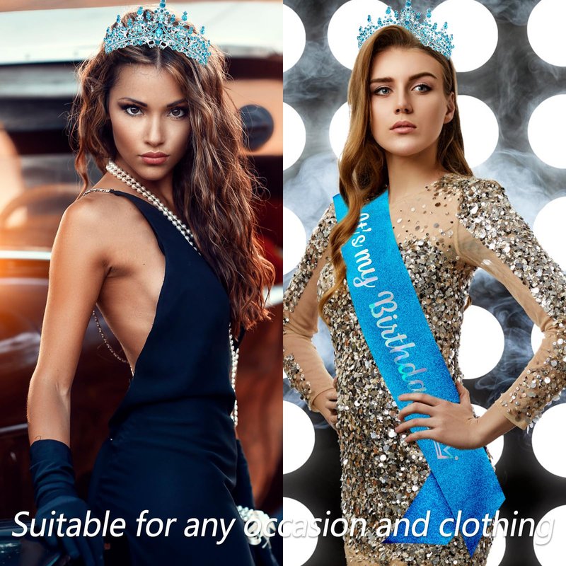 VELSCRUN Blue Crystal Birthday Tiara Crowns for Women Girls It's My Birthday Sash Queen Girls Princess Crown with Combs Happy Birthday Party Decorations Mom Sisters Birthday Gift Hair Accessories