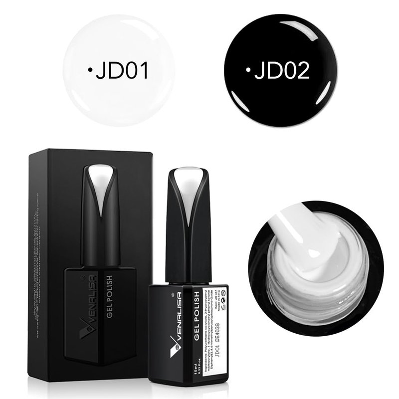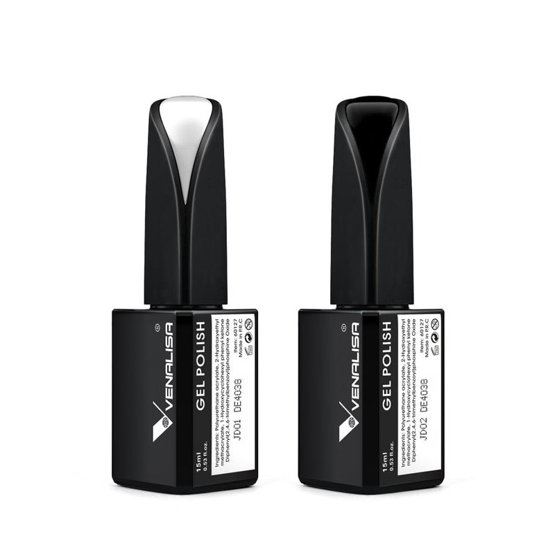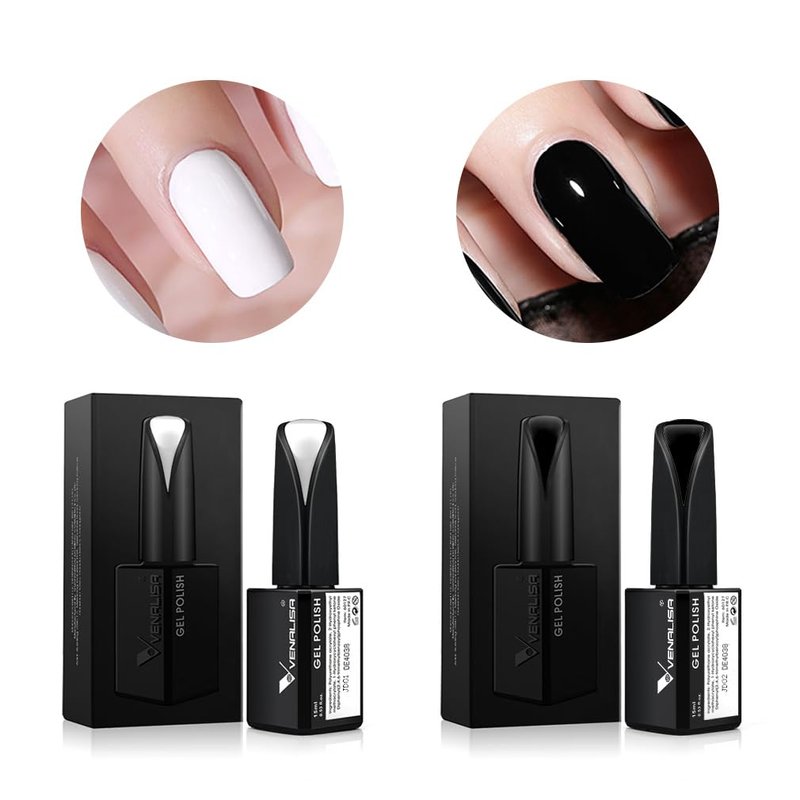 VENALISA 2Pcs 15ml Black White Gel Nail Polish Kit, Nail Gel Polish Set Soak Off UV LED Nail Art Starter Manicure Salon DIY at Home