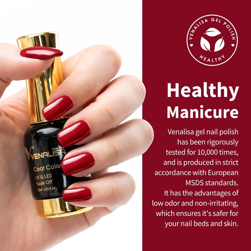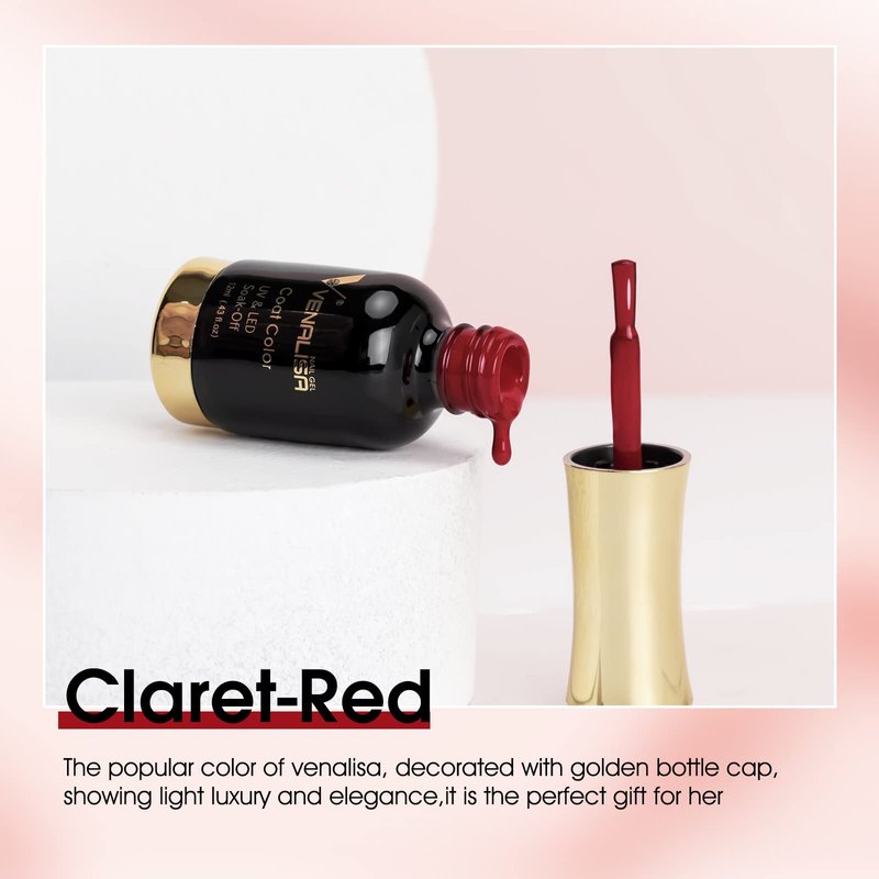 VENALISA Dark Red Gel Nail Polish, 12ml Claret-Red Gel Polish Deep Red Color Soak Off UV LED Nail Gel Polish Nail Art Starter Manicure Salon DIY at Home, 0.43 OZ