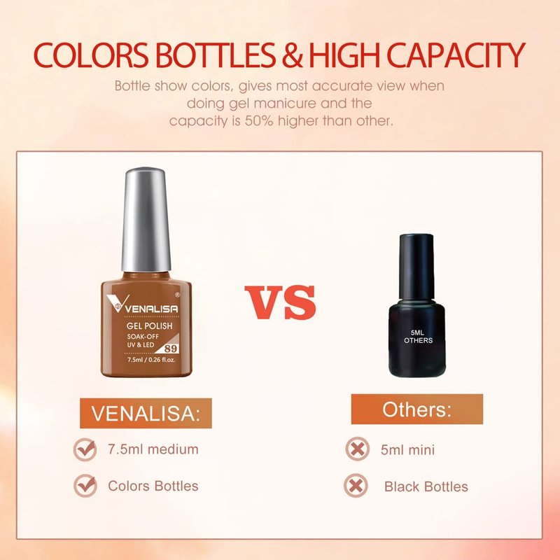 - ❤VENALISA Gel Polish Kit: Compared with other 5ml small capacity, our Gel Nail Polish capacity is 7.5ml * 12Pcs, which more durable