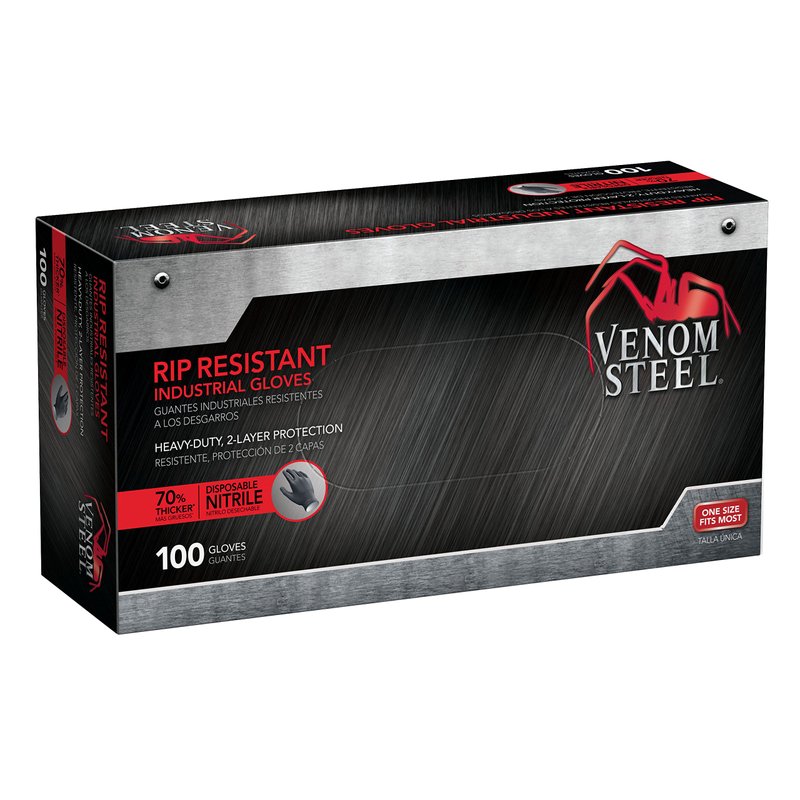Venom Steel Industrial Nitrile Gloves, 6 mil, 2 Layer Rip Resistant, One Size Fits Most, 100 Count