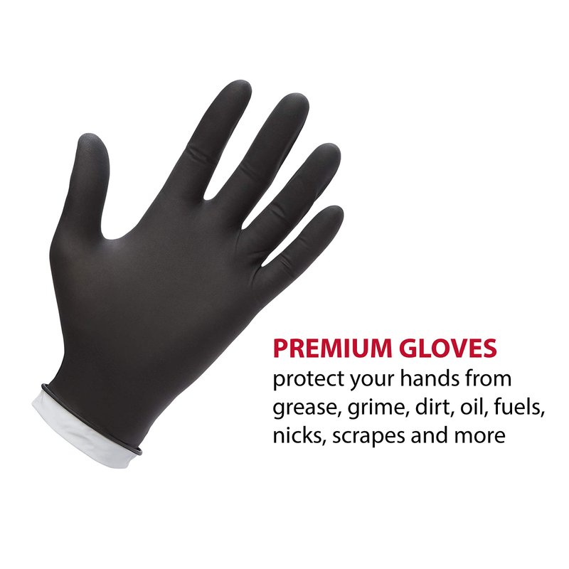 - Venom Steel black nitrile rubber gloves help protect your hands from grease, grime, dirt, oil, fuels, nicks, scrapes and more