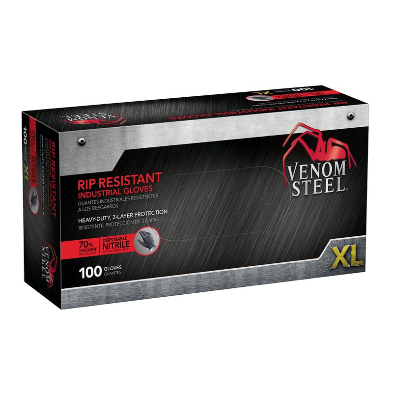 Venom Steel Industrial Nitrile Gloves, 6 mil, 2 Layer Rip Resistant, XL, 100 Count , Black