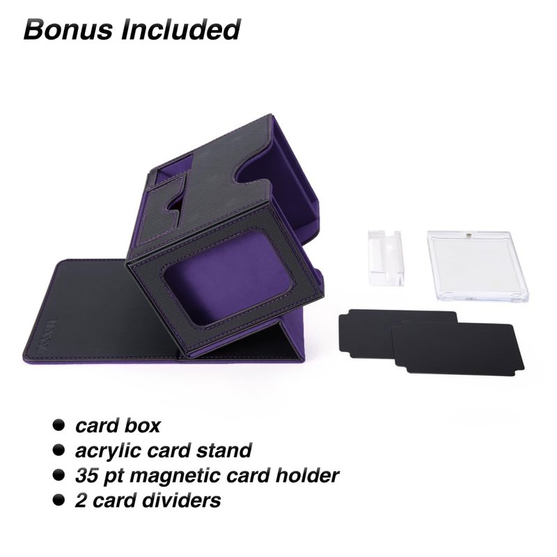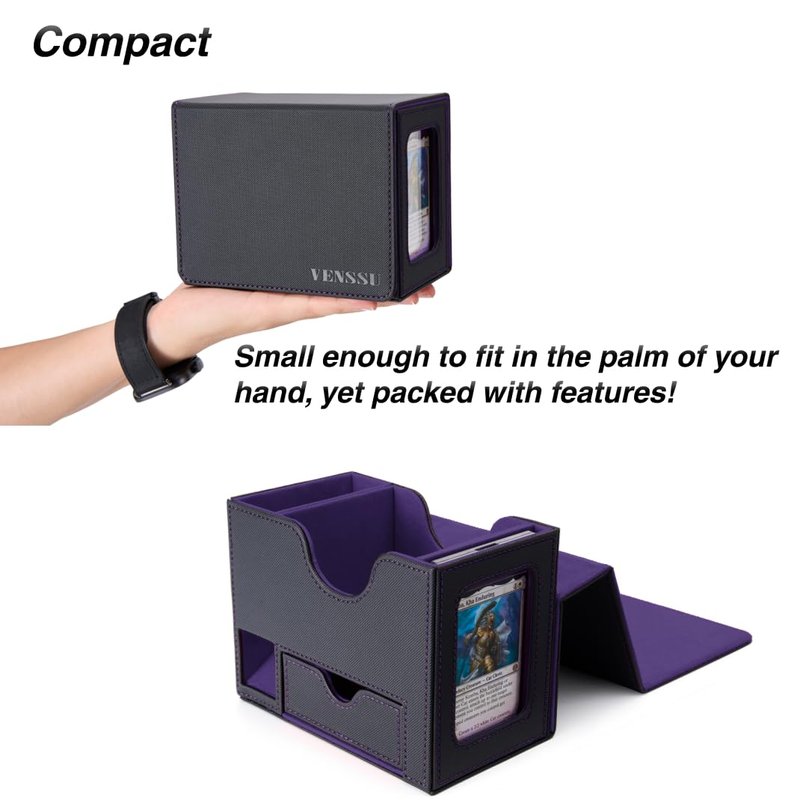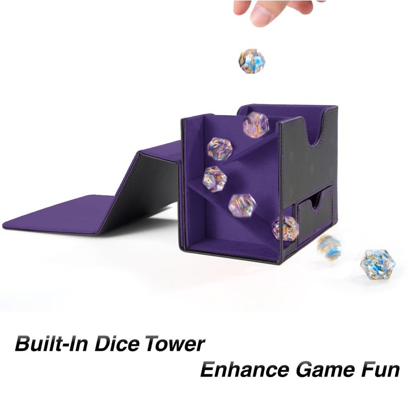 Venssu Card Deck Box for MTG Commander, Mtg Deck Box for Commander Display,Fits 100 Double-Sleeved Cards, 35pt Card Brick, Dice Tray and Dice Tower (Black and Purple)