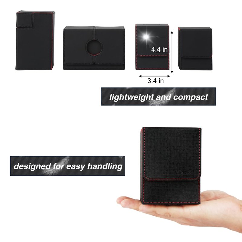 - 【Powerful protection】Featuring a sturdy and durable PU leather shell for shock protection and a soft microfiber interior to safeguard cards from scratches, this compact deck box has multiple magnets for secure closure.