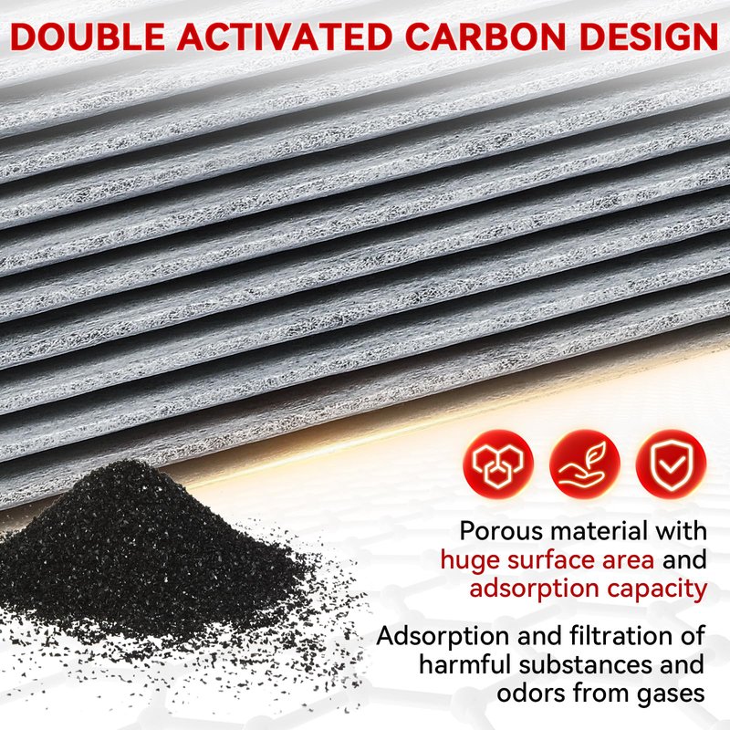 - 【Dual-layer carbon design】 CP966 CF11966 cabin filter is designed with dual-layer activated carbon to provide stronger adsorption capacity, eliminate odors, and enhance filtration. Improve the driving environment and keep the air inside the car clean and healthy.
