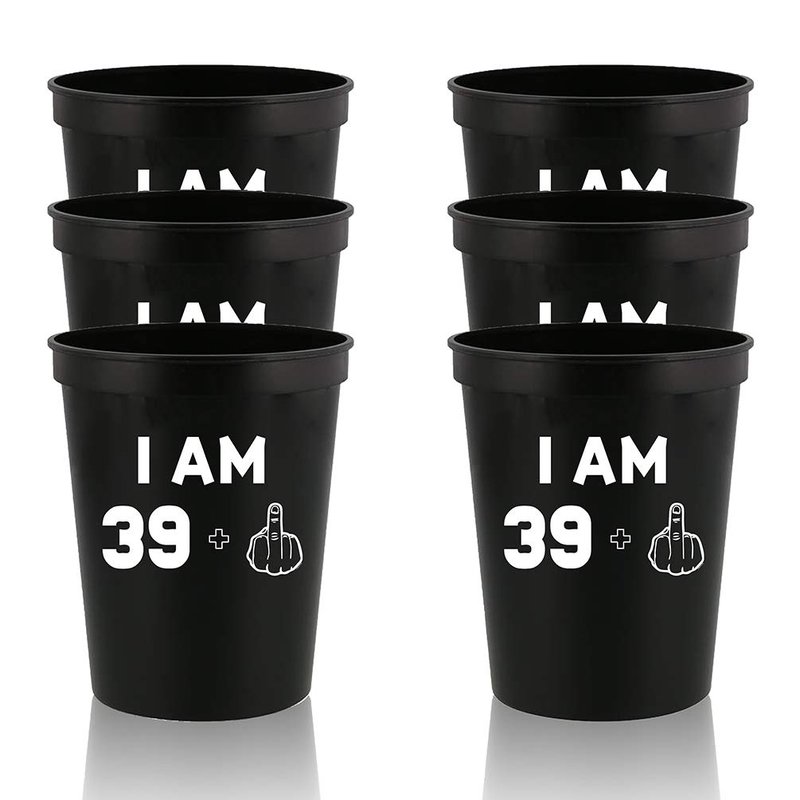 Veracco I am 39+1 Middle Finger Stadium Party Cup Funny 40th Birthday Gag Gifts For Him Her Fourty And Fabulous (Black, 12)