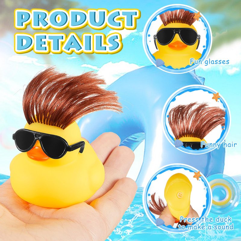 - Interactive Duck Squeaks: our mini ducks with solid glasses and wig come with a unique feature, an in built sound generator, which upon squeezing, produces a realistic duck sound; This sensory feature creates wonders in engaging your child during playtime, fostering their listening skills and sparking their curiosity