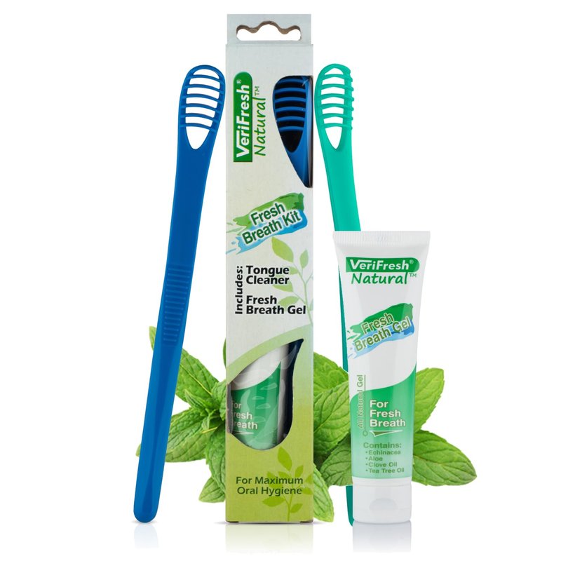 VeriFresh Fresh Breath Kit for Bad Breath Family-Pack - 2 Tongue Scraper & Cleaners with 1 Cleaning Gel – All Natural Treatment