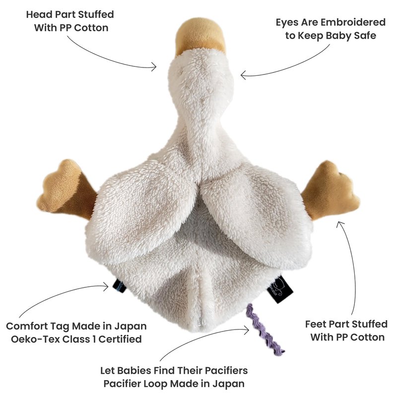 - RIGOROUSLY SELECTED MATERIAL - Made of polyester, organic cotton fabric, and polypropylene. Safe to chew and snuggle. We use extra soft materials to ensure that each lovey is soothing and inviting to a baby’s small hands. We only use embroidery for details to ensure the baby's safety