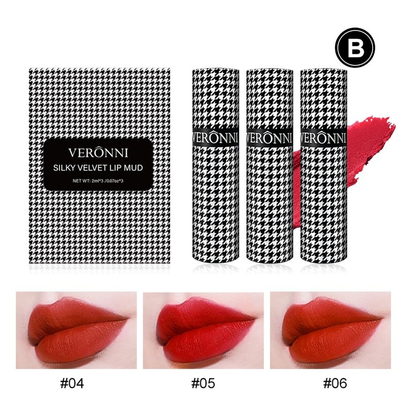 VERONNI 3 Colors Matte Lip Mud,Velvet Lip Gloss Set Multi-Purpose Matte Lipstick, Long Lasting Non-Sticky Gloss Smooth Pack Of 3 Lip Gloss Blush Makeup Set For Lips And Face (Set B)