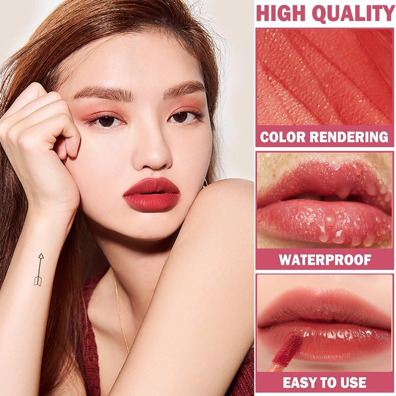 - 💄【Lightweight & Comfortable】Matte lip gloss is light in texture, velvety smooth and fresh, apply a thin layer on your mouth without feeling sticky and lumpy.