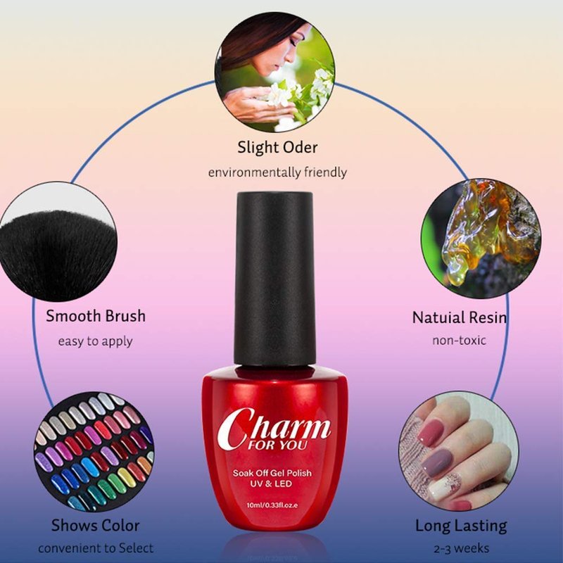 • HEALTHY INGREDIENTS:Our gel polish is made of natural resin, non-toxic formula. They are low odor, rich color, middle consistency, self-evenly, no shrink and edge.