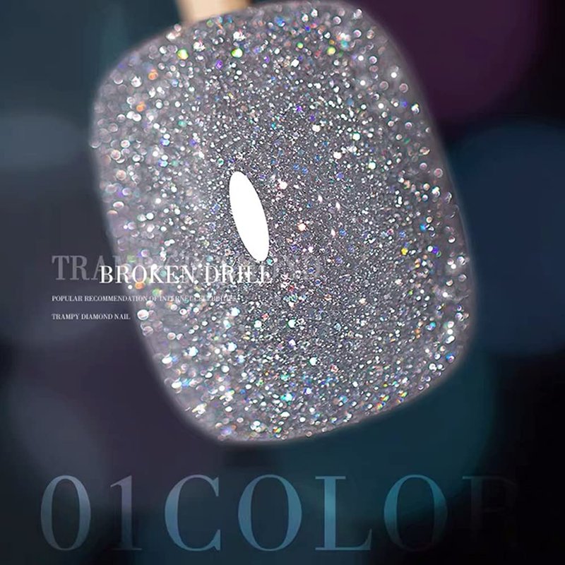 VERONNI Glitter Nail Gel Poish,Reflective Shine Nail Gel Polish Diamond Sparkling Explosion Nail Gel Soak Off UV LED Gel Nail Art Manicure10ml -Silver (S-001)
