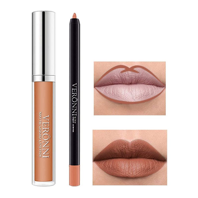 - 💋WATERPROOF & LONG-LASTING :This VERONNI Lipstick with Lip Liner Pencil Kit is Super-waterproof, ultra-long-lasting liquid lipstick, fast drying, no cup, easy to decolorize, lock color - no need to reapply or retouch