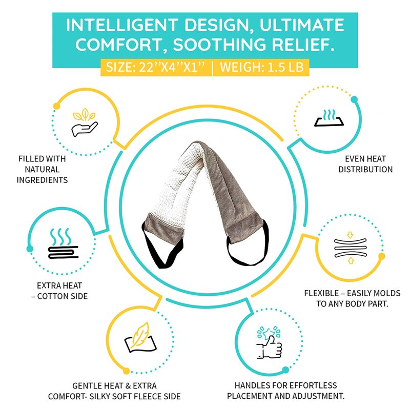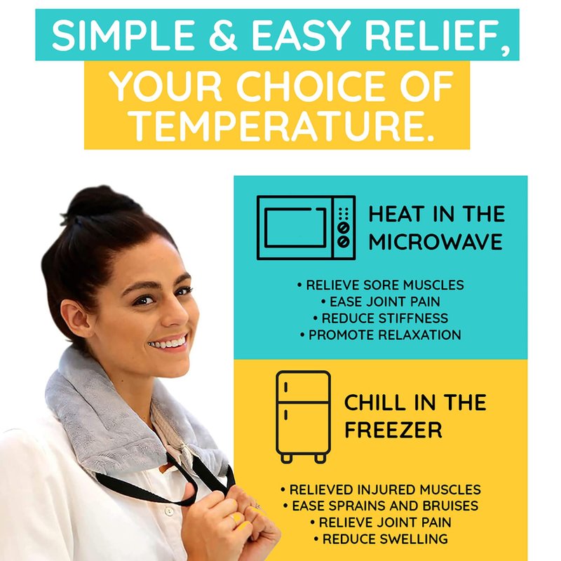 - SOOTHING, EFFECTIVE RELIEF: Our versatile microwavable heating pad is not just for your neck and shoulders. Ease aches and discomfort anywhere you feel them on your body. Our microwavable heating pads allow you to manage discomfort easily, safely, and effectively on your neck, shoulder, knee, elbow, and back. Manage muscle pain and cramps without the worry of side effects from taking medication.