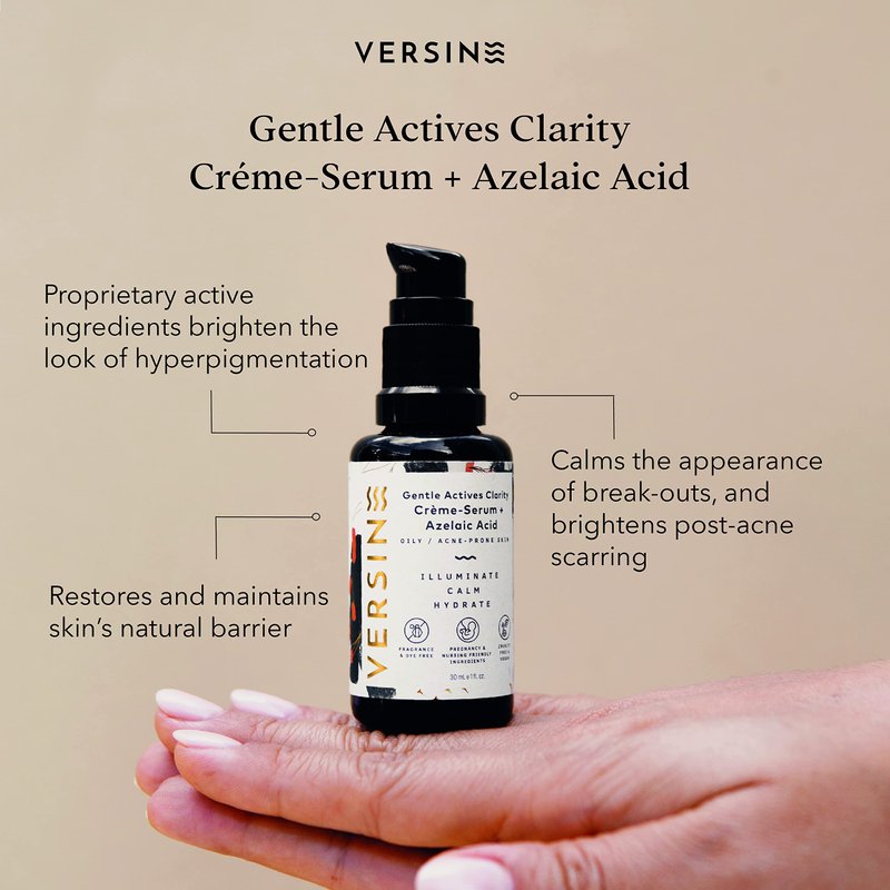 Versine Gentle Actives Serum for Face | Acne Prone Skin | Pregnancy Safe with Azelaic Acid, Vitamin C, Squalane, Niacinamide, Hyaluronic Acid | Moisturizer, Anti Aging and Brightening | 1Fl Oz