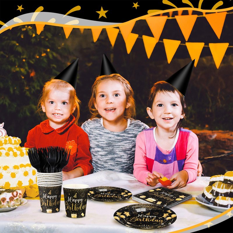 - Ideal Choice for Birthday Party Favors: owing to its comprehensive nature and beautiful design, our black and gold party plates serve as ideal birthday party favors; Whether it's a kid's party or an adult's birthday bash, these tableware sets inject more life and color to your party, making it unforgettable