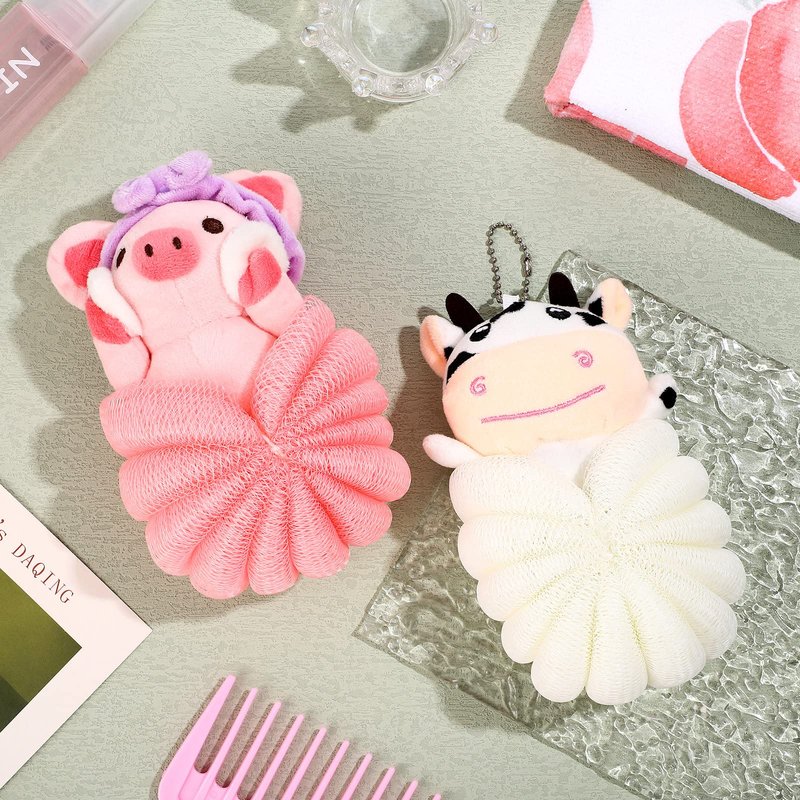 - Nice Combination: the package includes 2 pieces of kids loofahs for shower in 2 animal styles, pig and cow, the lovely patterns can meet your kid's daily shower needs, and you can also share them with your other family members