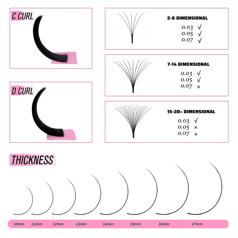 - Cashmere Easy Fan eyelash extensions tray. 0.05 thickness, D curl, 8-16mm mixed length.