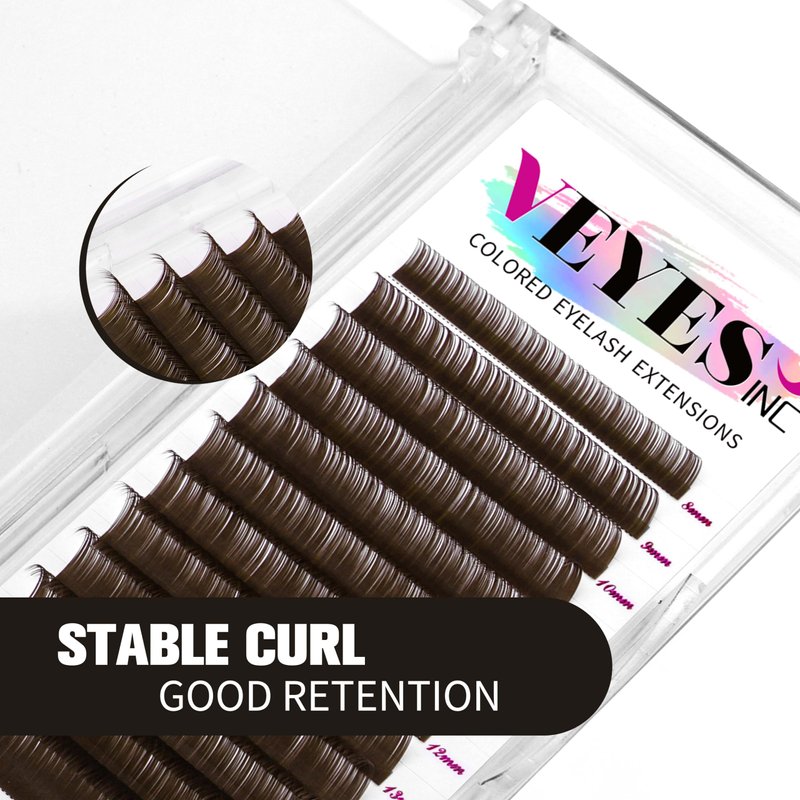 VEYES INC Colored Lash Extensions 03 05 07 15 C/D Curl 8-16mm Mixed Length Tray, Premium Individual Silk Eyelashes, Professional Supplies for Lash Techs (Dark Latte Brown 0.03 CC 8-16mm)