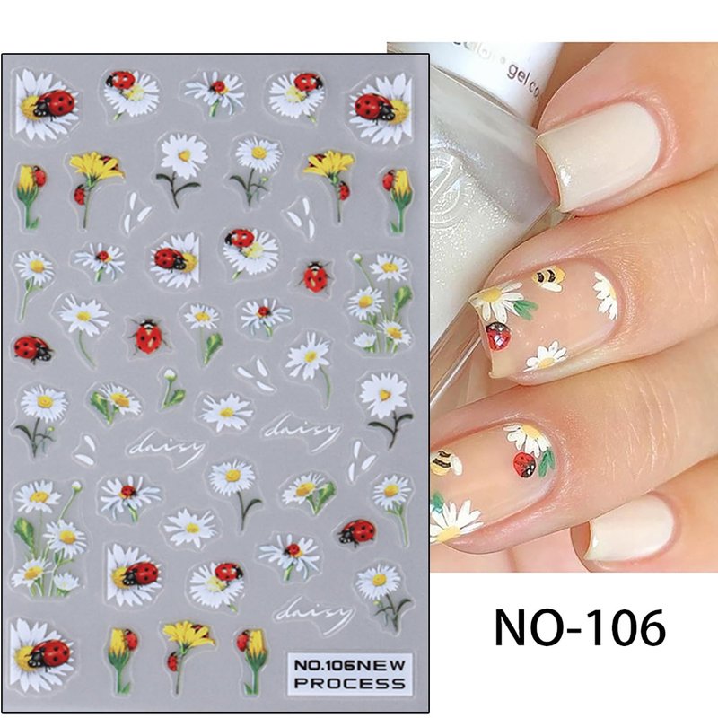 Vezocim Flower Nail Art Stickers Decals Ultra Thin 3D Nail Self-Adhesive Sticker Designs Sunflower Daisy Tulip Butterfly Ladybug Nail Transfer Decal Supplies for Women Manicure Charm Decorations