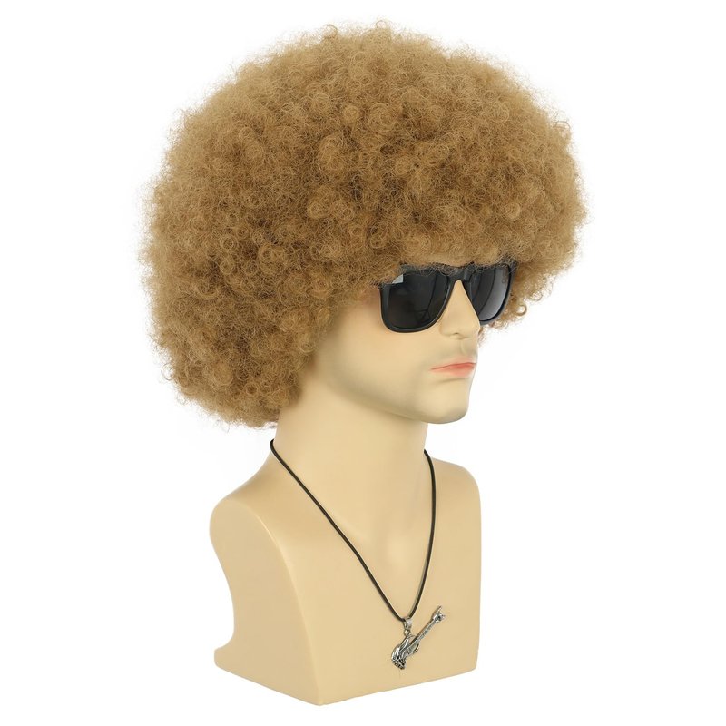 VGbeaty Afro Fluffy Wig for Men or Women Short Curly Brown Rocker Wig California Halloween Hippie Party Cosplay Costume Wig (Brown)