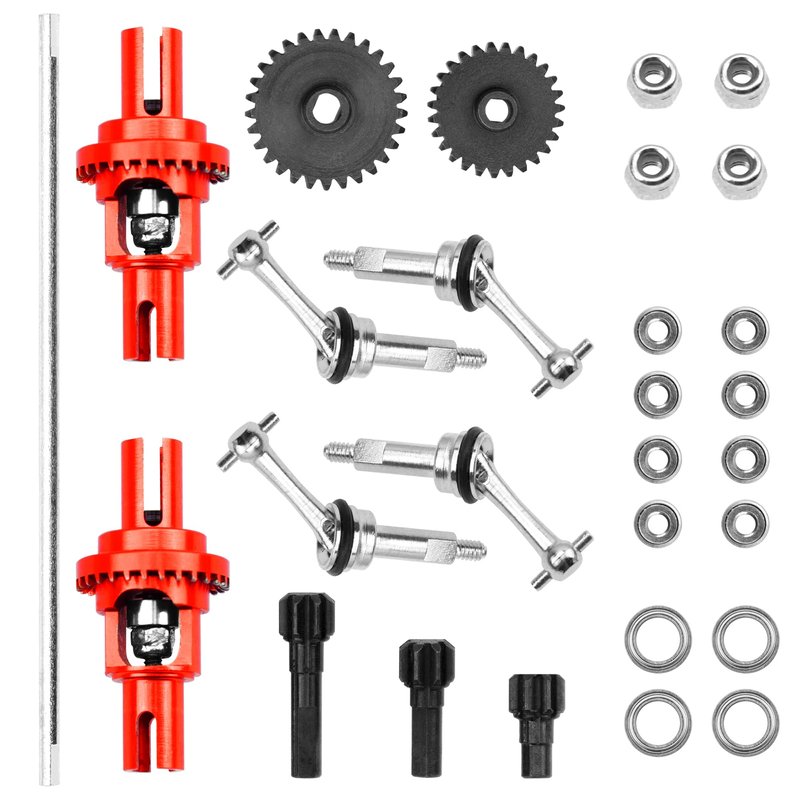 - Differential Color: Red ;Package includes 1Pcs 1/28 center drive shaft & 2Pcs 1/28 Metal Differential , 4Pcs drive shaft Joint and bearing set, great strength,easy to install and upgrade.