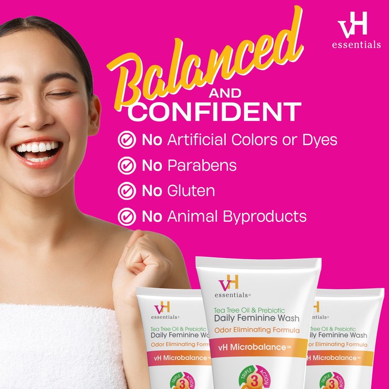 - This vaginal wash offers vH Microbalance Odor Blocking Blend in a tea tree oil cleanser