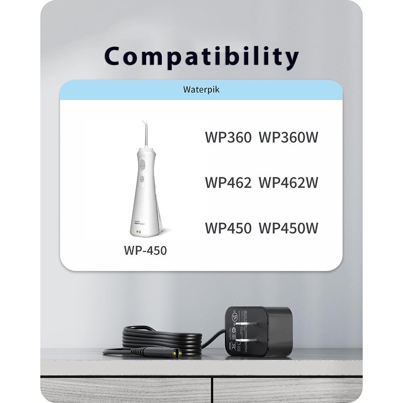 - 【COMPATIBILITY】VHBW replacement for Waterpik charger indended for Waterpik model WP360 WP360W WP462 WP462W WP450 WP450W Two prong water flosser charger cord, as a replacement for adapter model YLA-03010